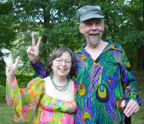 Here we are several years ago, at a friend’s 1960s-themed birthday party! Bent and I are wearing clothes that each of us had actually designed and sewn — back in the ’60s.